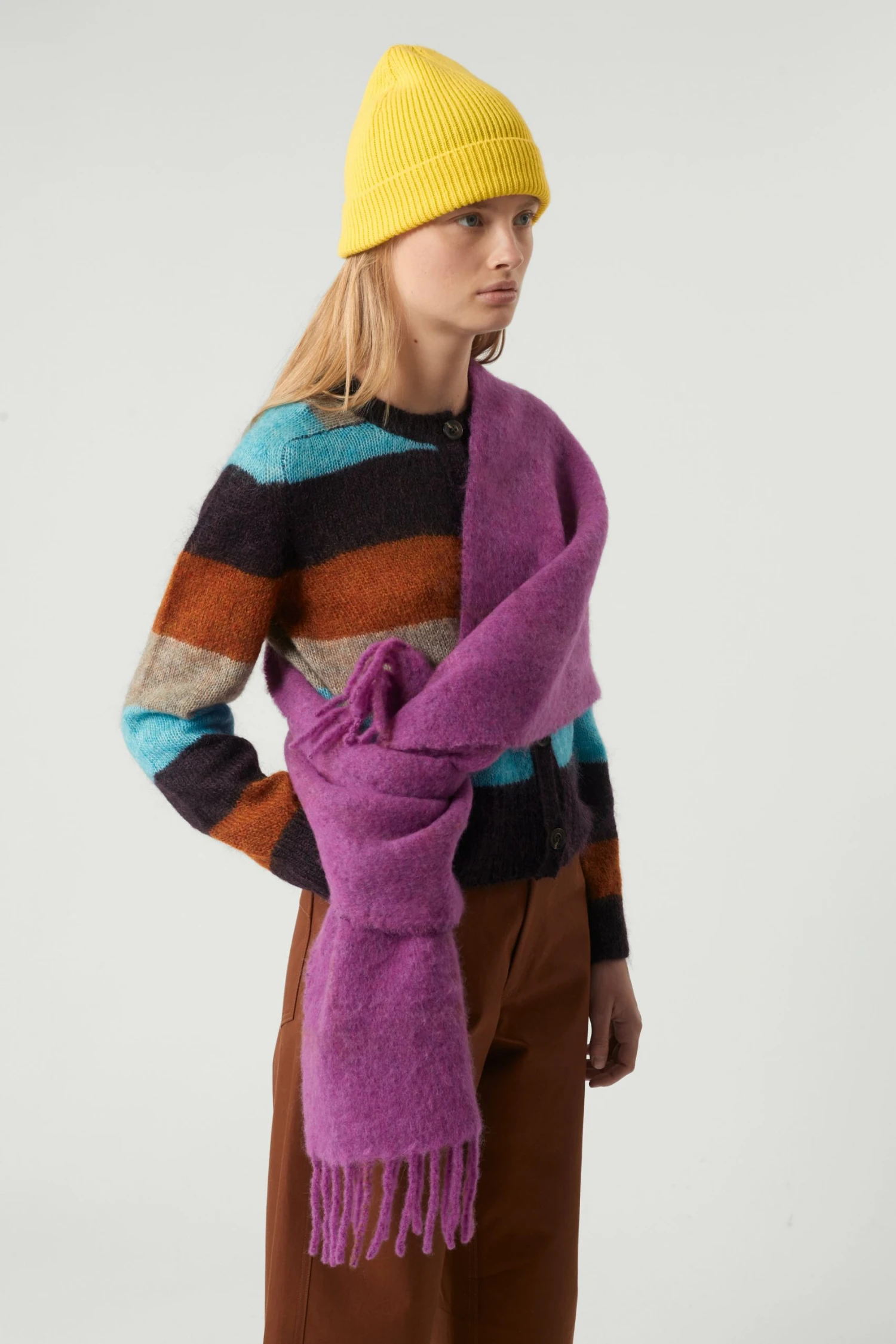 Soft est une grande écharpe hivernale en laine de 45x200cm. Elle est chaude tout en restant douce au toucher et assez souple pour être enroulée plusieurs fois autour du cou. Faite en laine d’alpaga, elle possède notre monogramme ‘S’ brodé ton sur ton.