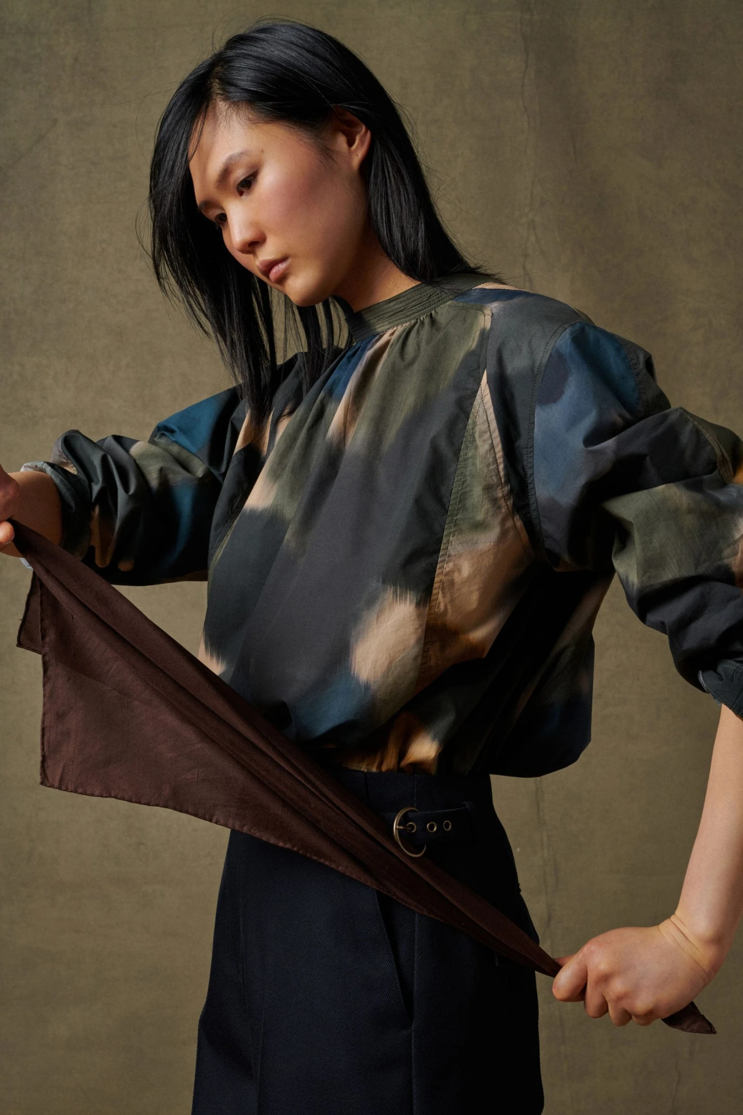 Scarlett est une chemise empruntant les codes de la vareuse avec de nombreuses découpes et empiècements à l’encolure. Le placement des lignes et des détails a été travaillé pour obtenir une forme ample et ronde.