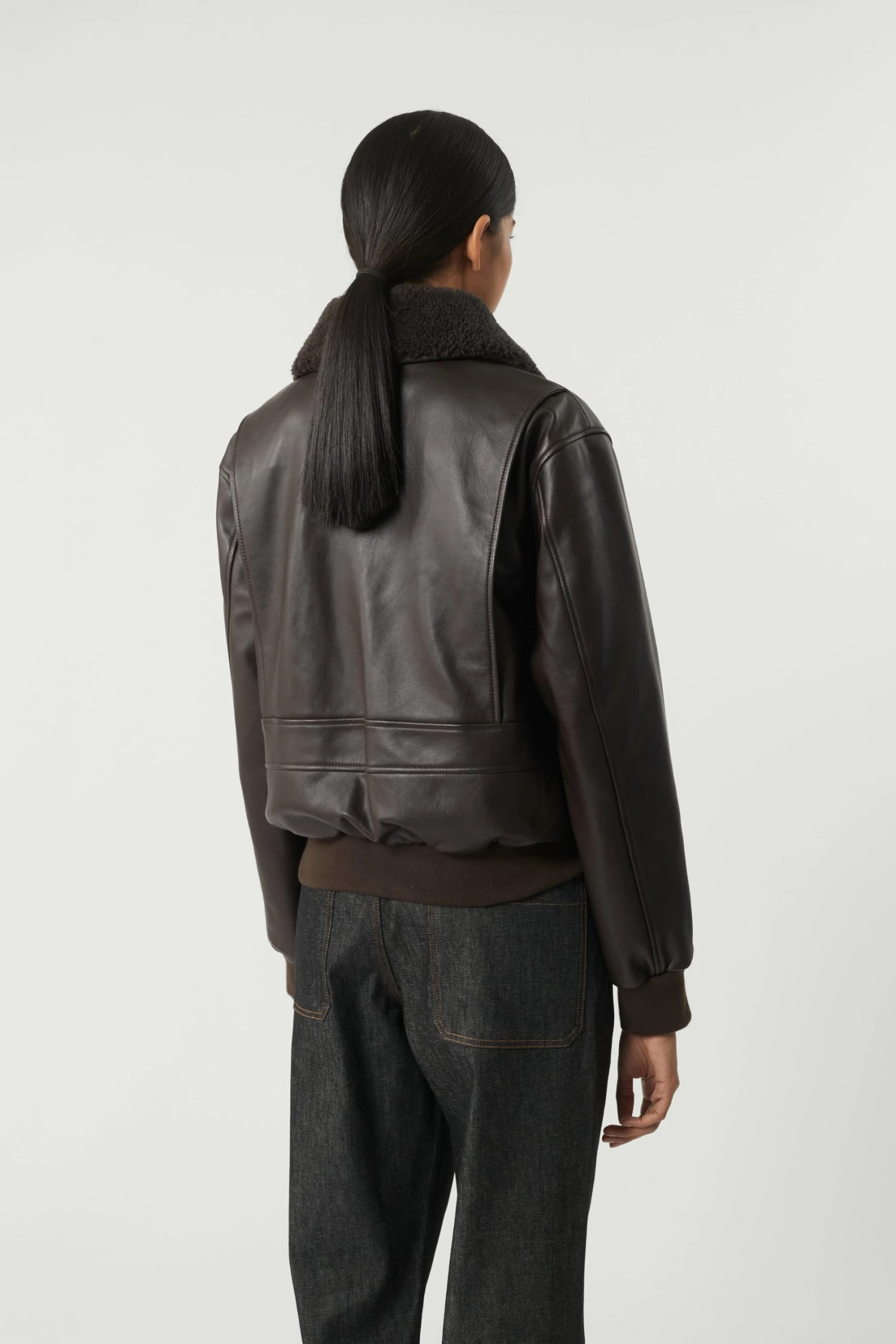 Ringo est un blouson en cuir souple et épais inspiré des blousons vintage avec sa forme ronde resserrée à la taille et son col amovible en fausse fourrure. Les poches à l’avant possèdent une double entrée ainsi qu’un rabat à pressions.