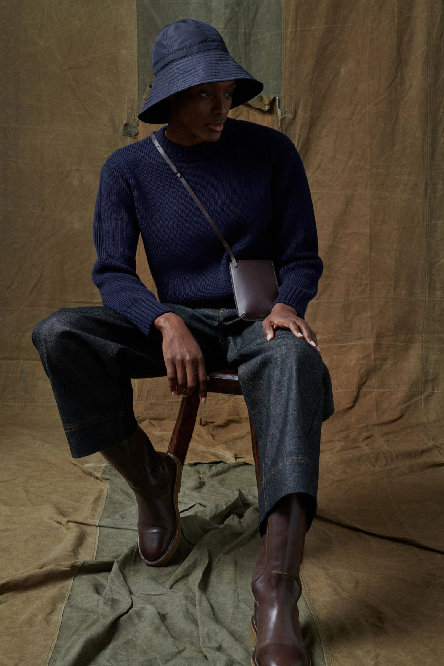 Sombrebro est un bob aux bords larges inspiré des capelines. Le travail de surpiqures ajoute une touche sport.