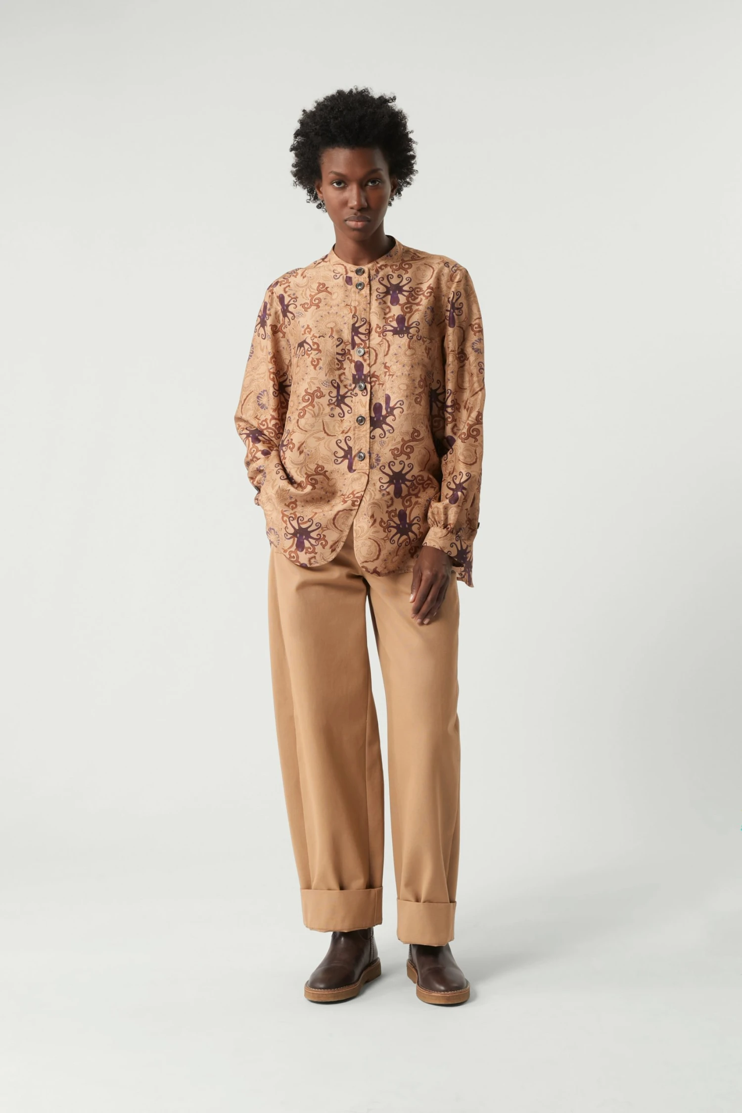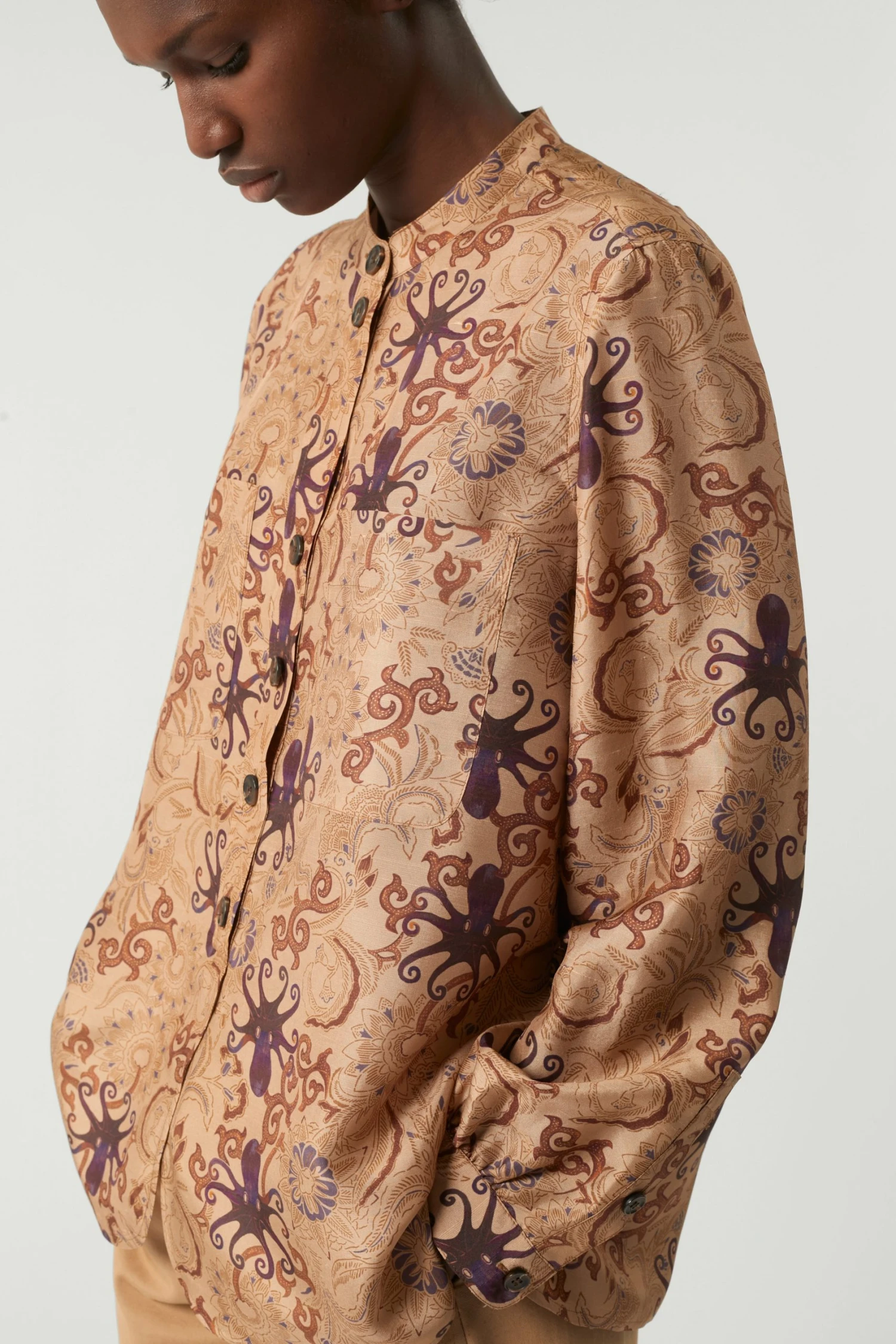 Chemise en soie imprimée multicolore