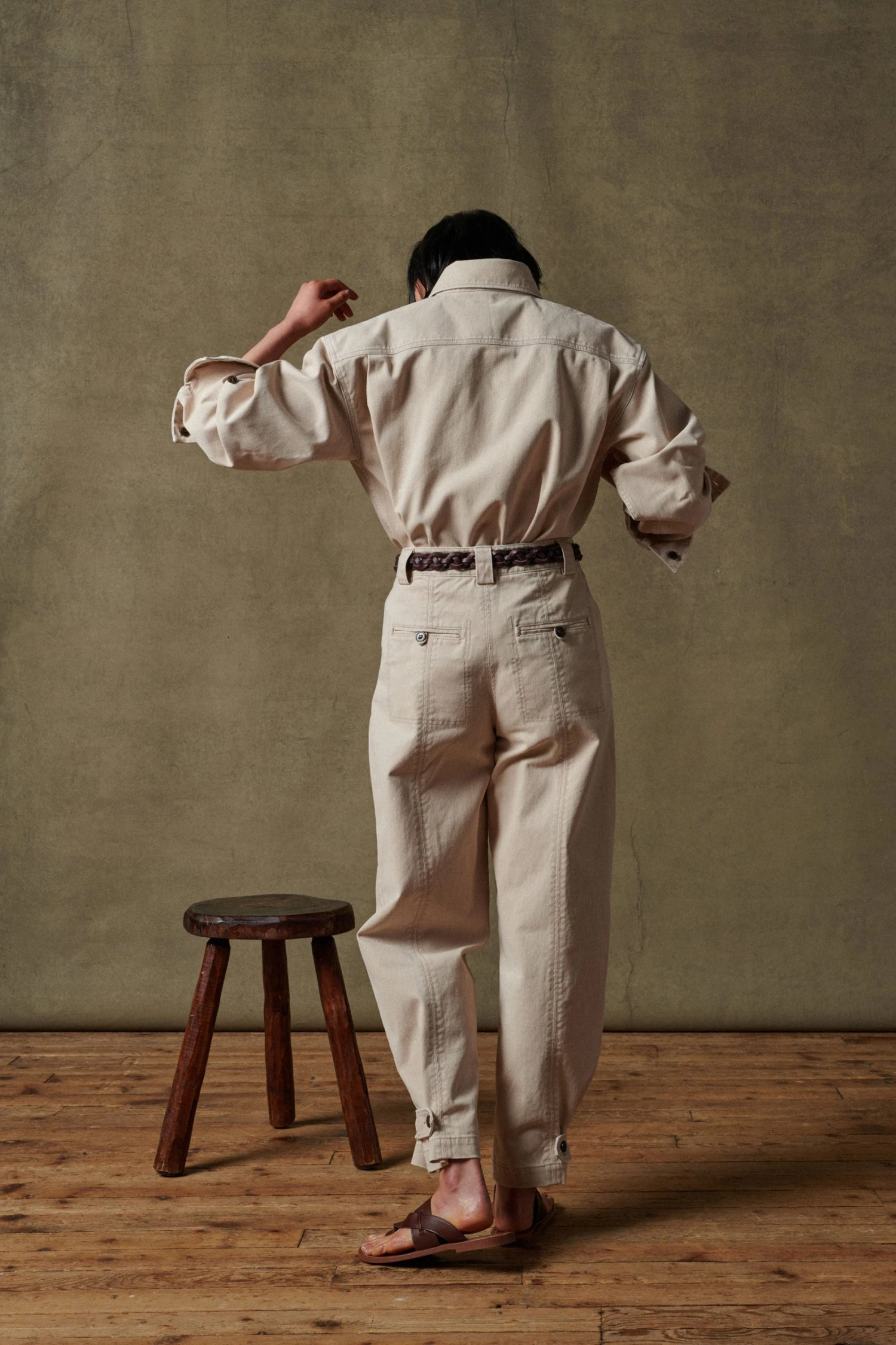 Chemise en toile de coton enduite craie