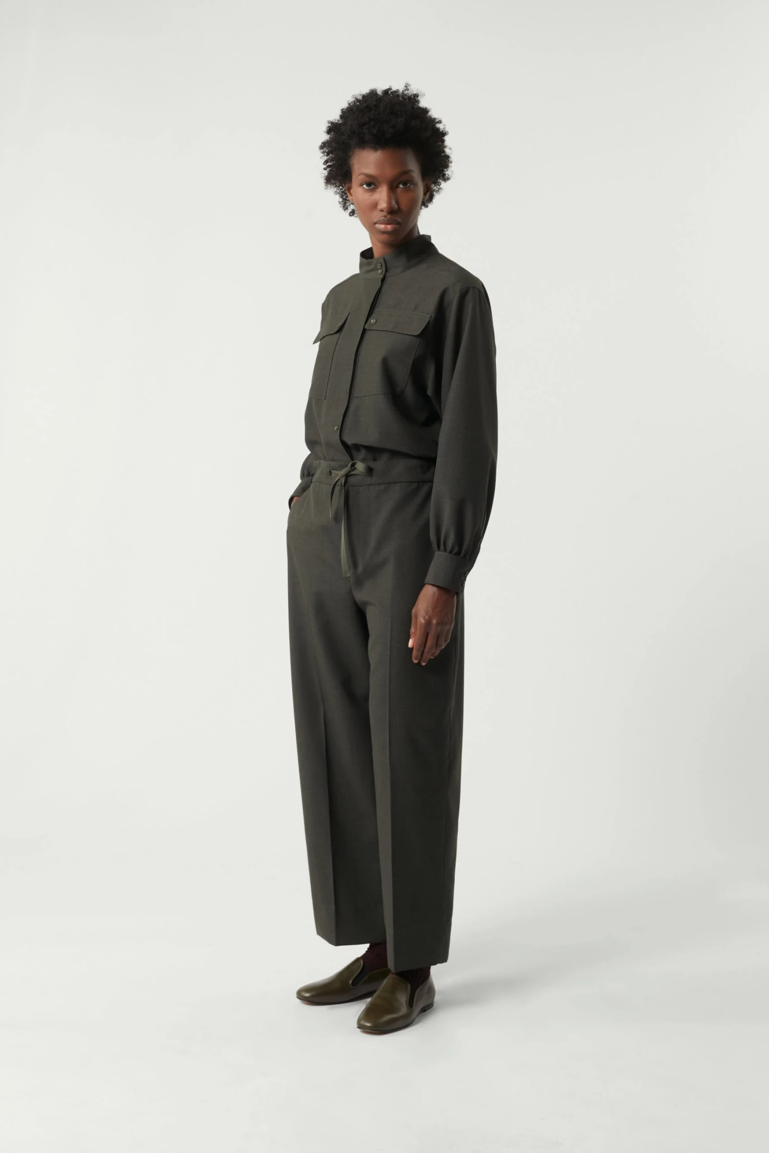 Rita est une chemise classique aux détails empruntés au vestiaire militaire. Elle est féminisée par sa matière en soie et laine qui est souple lui donnant un joli tombé. Elle arbore le col montant emblématique des collections Sœur et se ferme par une patte de boutonnage.