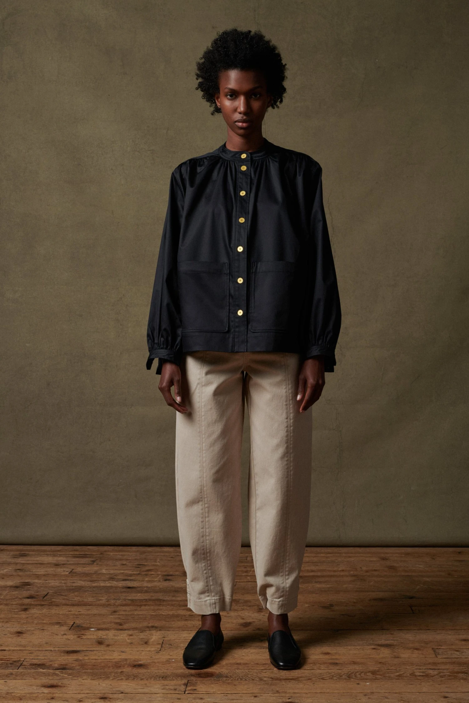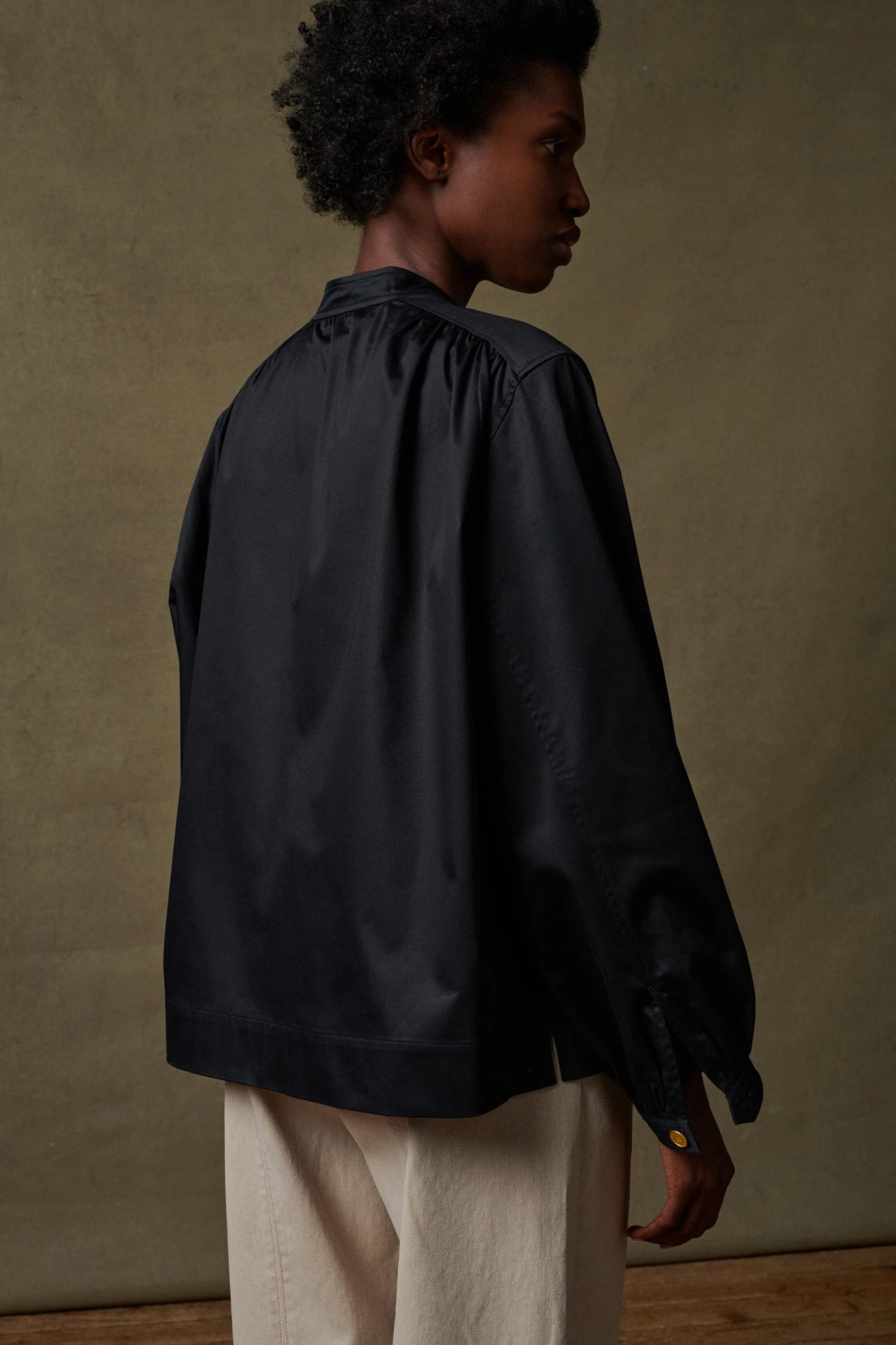 Séraphine est une chemise créée pour les occasions de l’été. Elle est coupée dans un satin de coton de poids moyen, idéal pour maintenir son volume ample au porté.