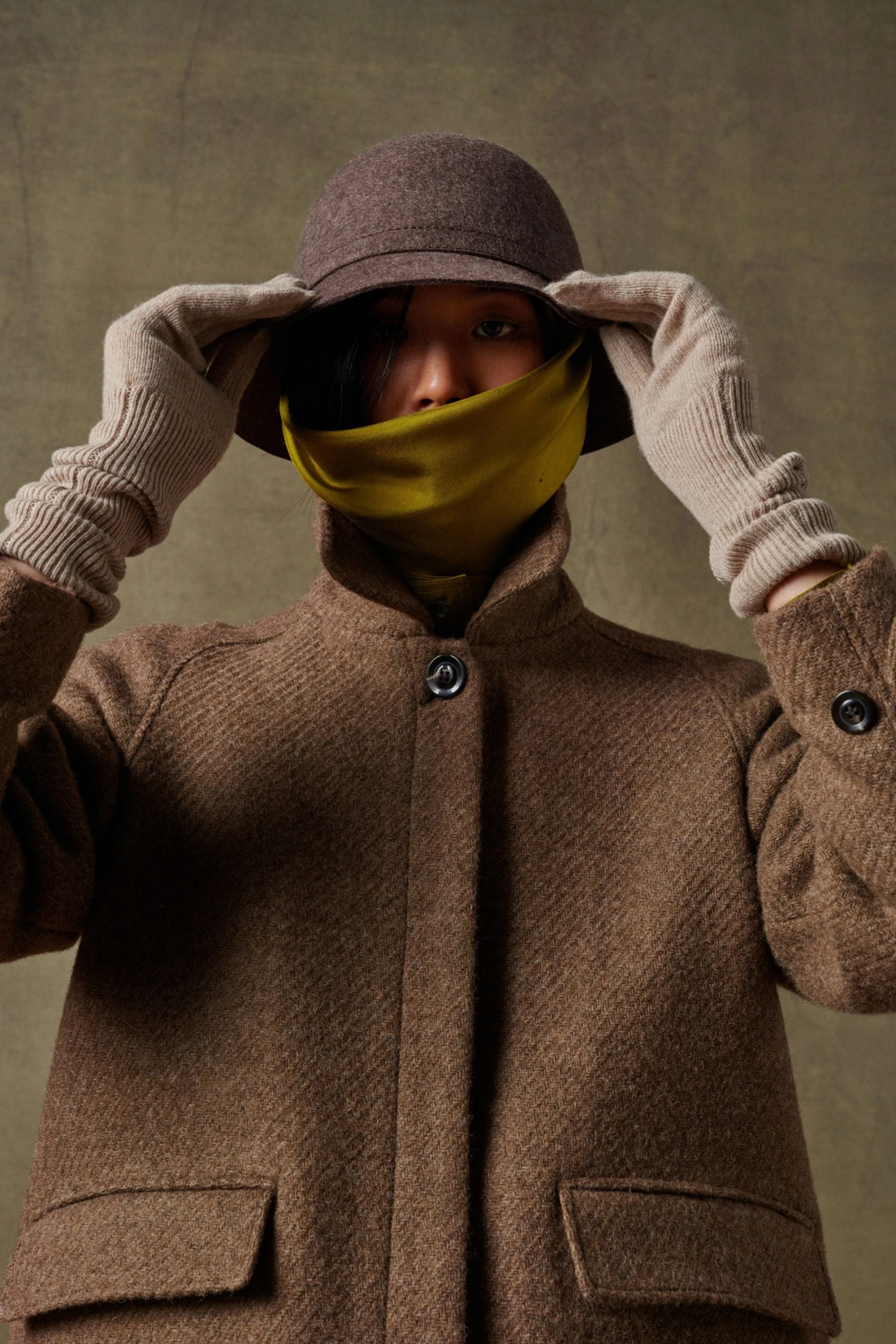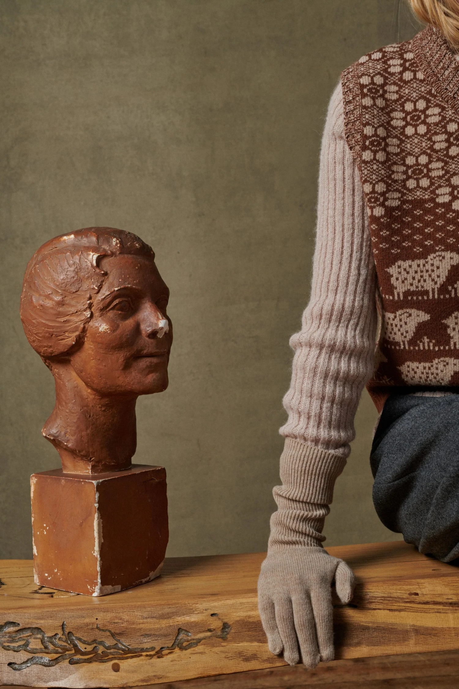 Sol est une paire de gants hauts en laine, montant jusque sous le coude et ajustée à la main.