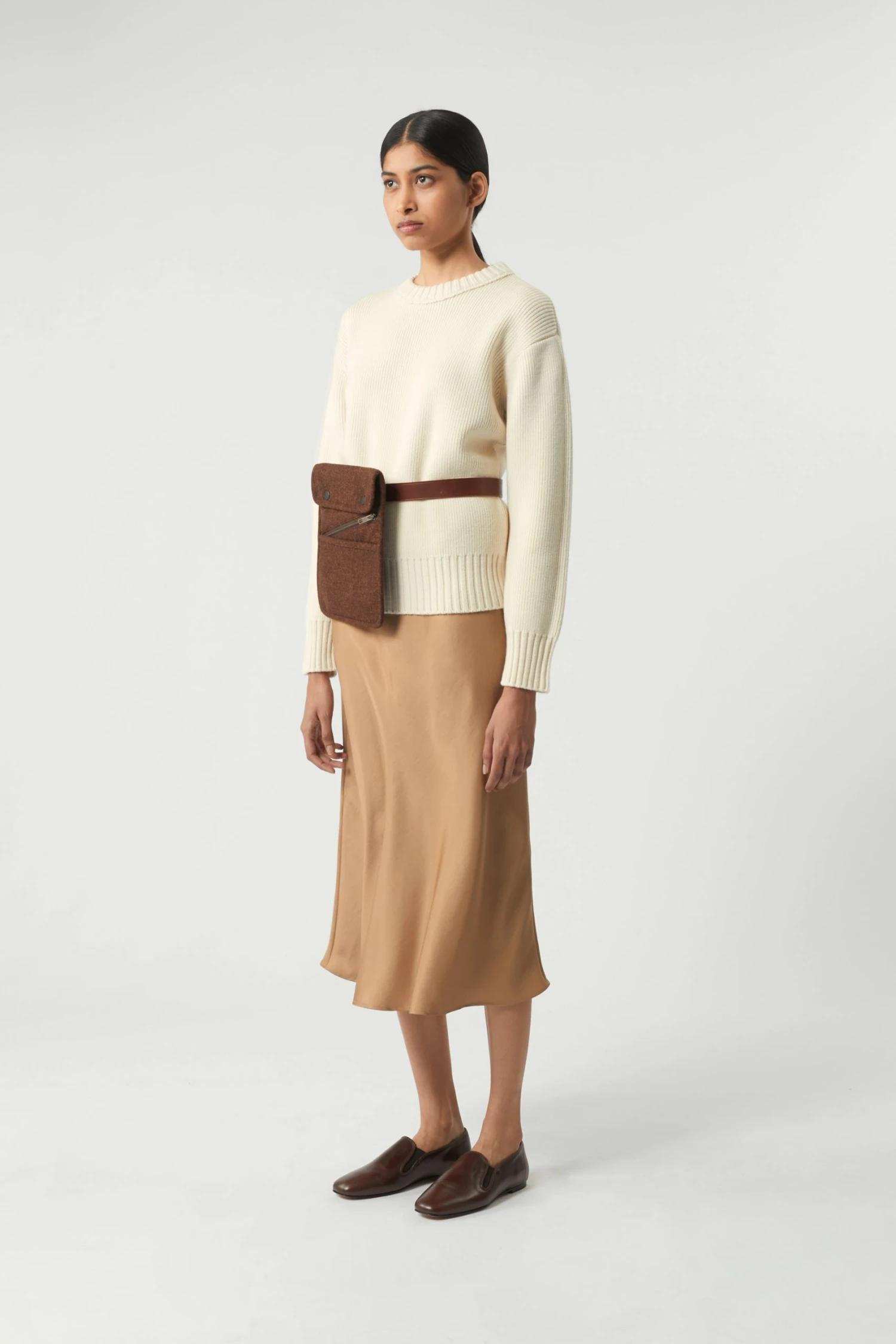 Jupe longue en sergé fluide beige