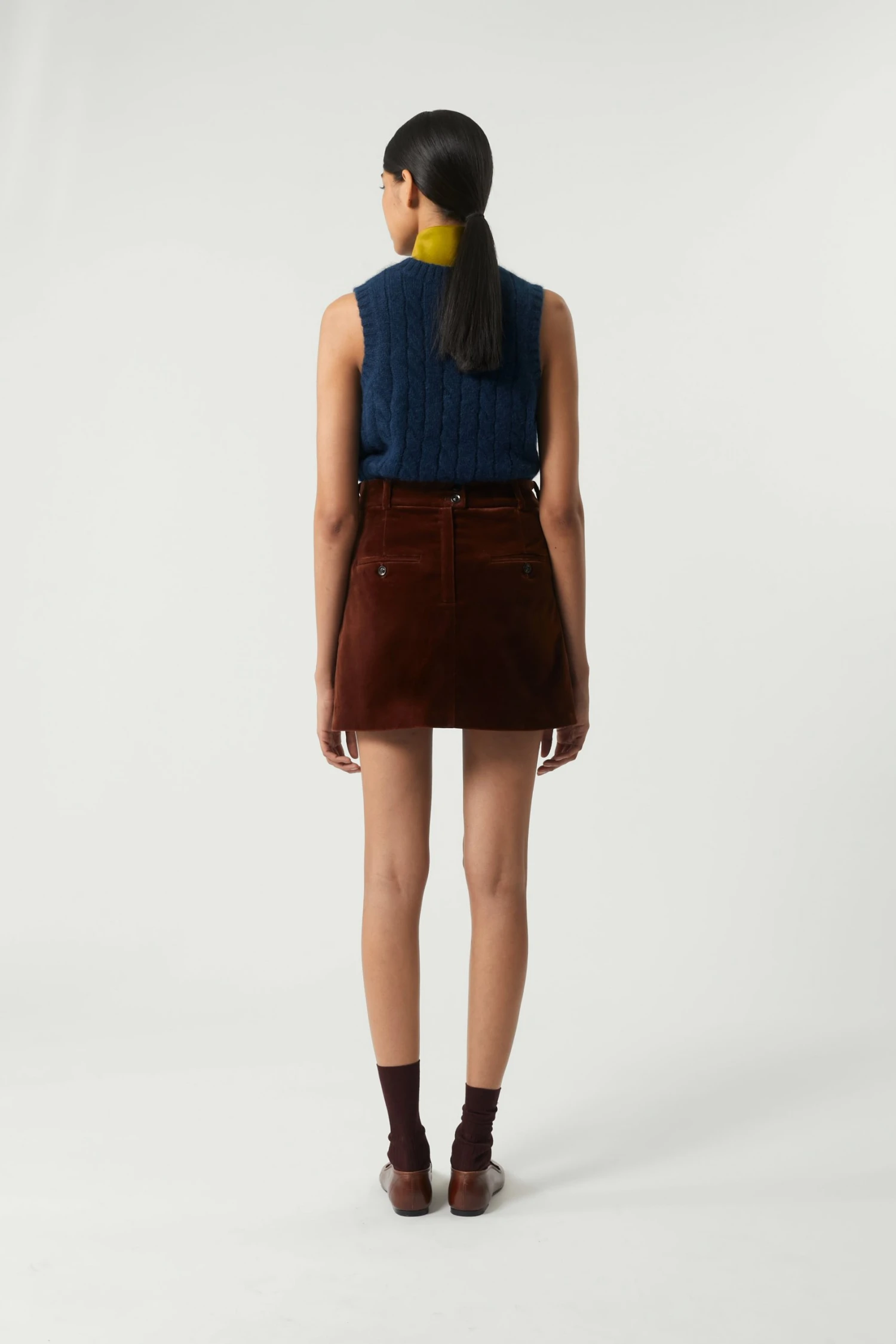 Mini-jupe en velours lisse noisette