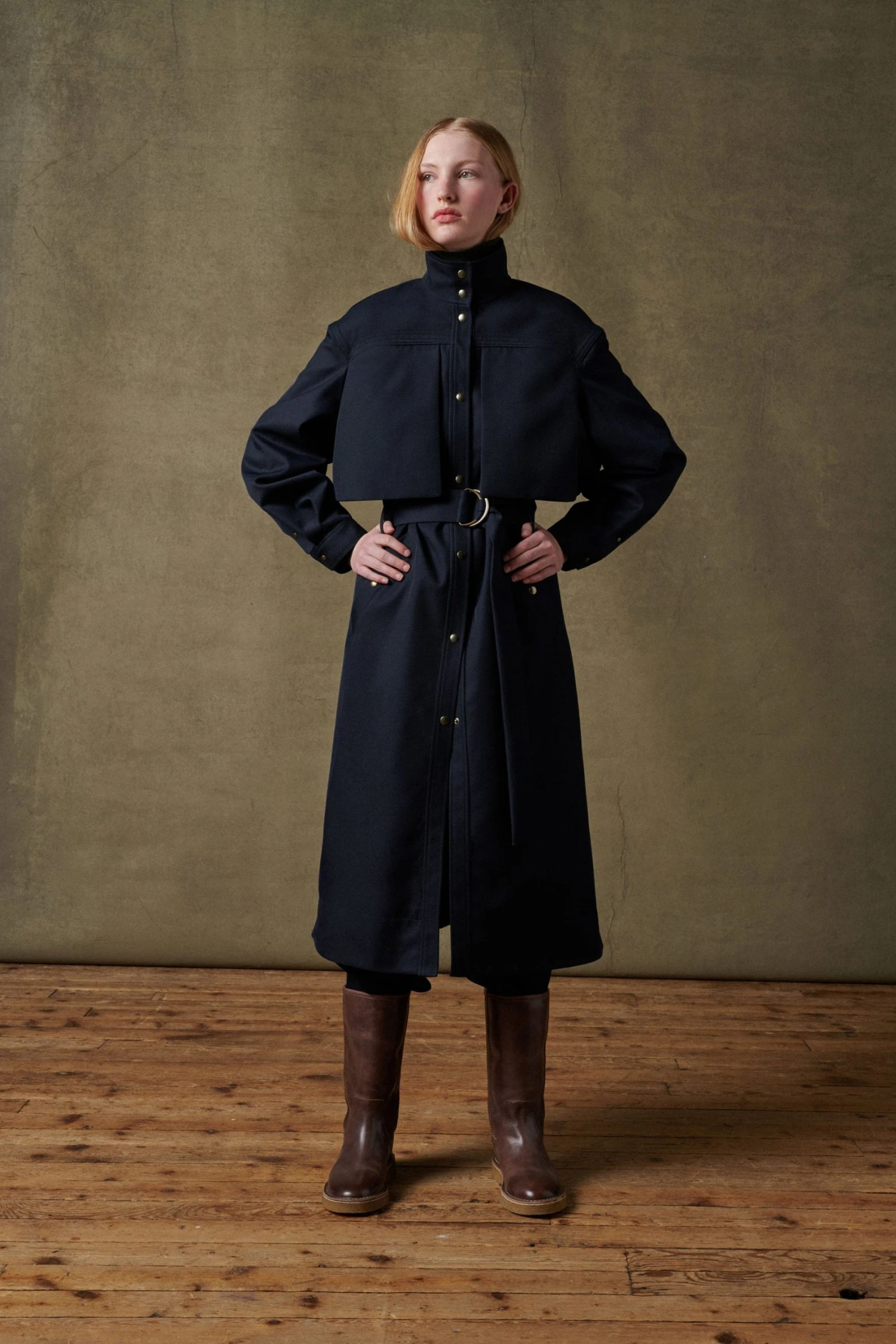 Manteau en gabardine de laine navy