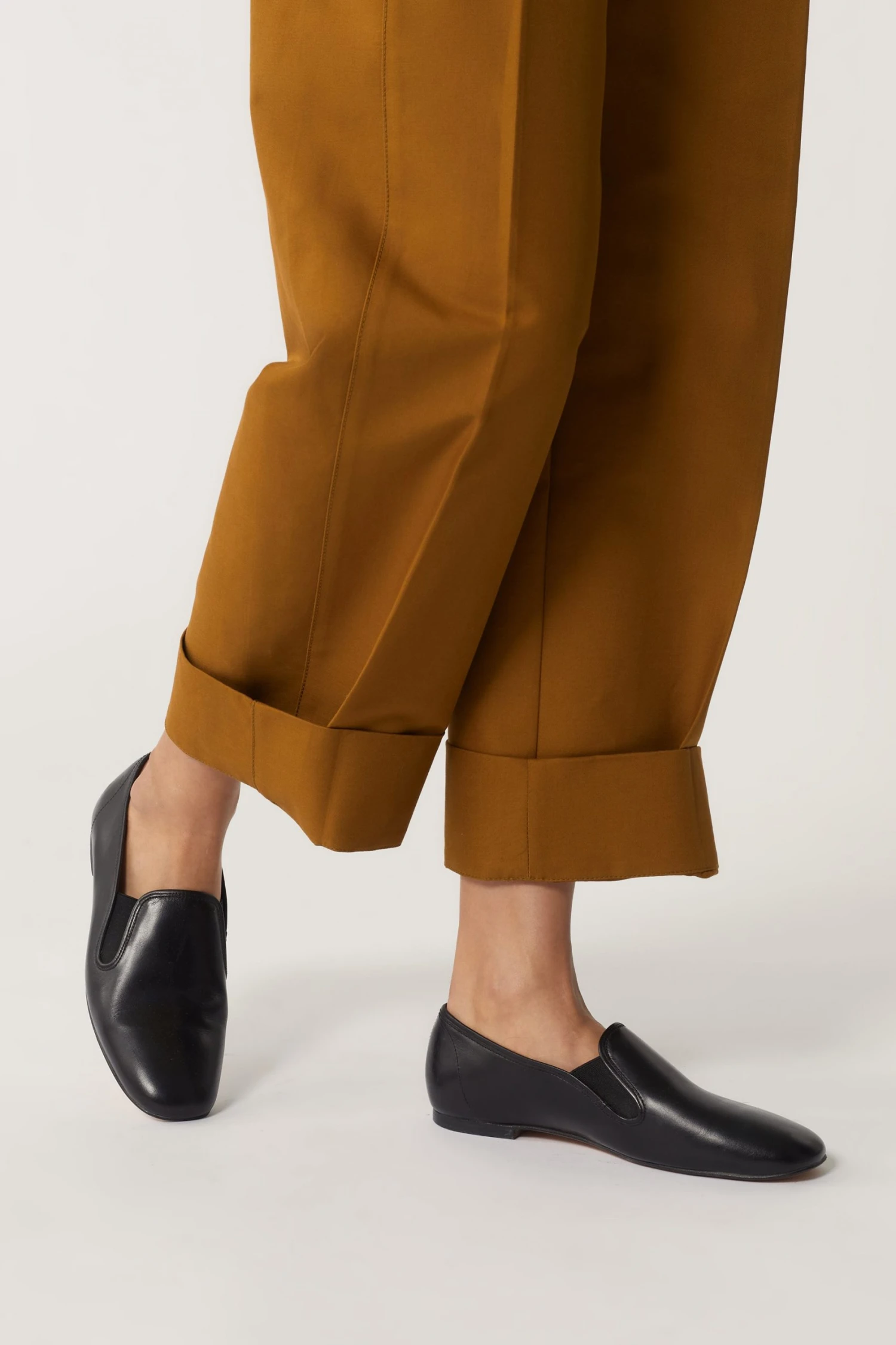 Pacha est un soulier couvrant inspiré des chaussons traditionnels Chinois. L’élastique aux côtés ajoute un contraste de matière tout en permettant de faciliter l’essayage.