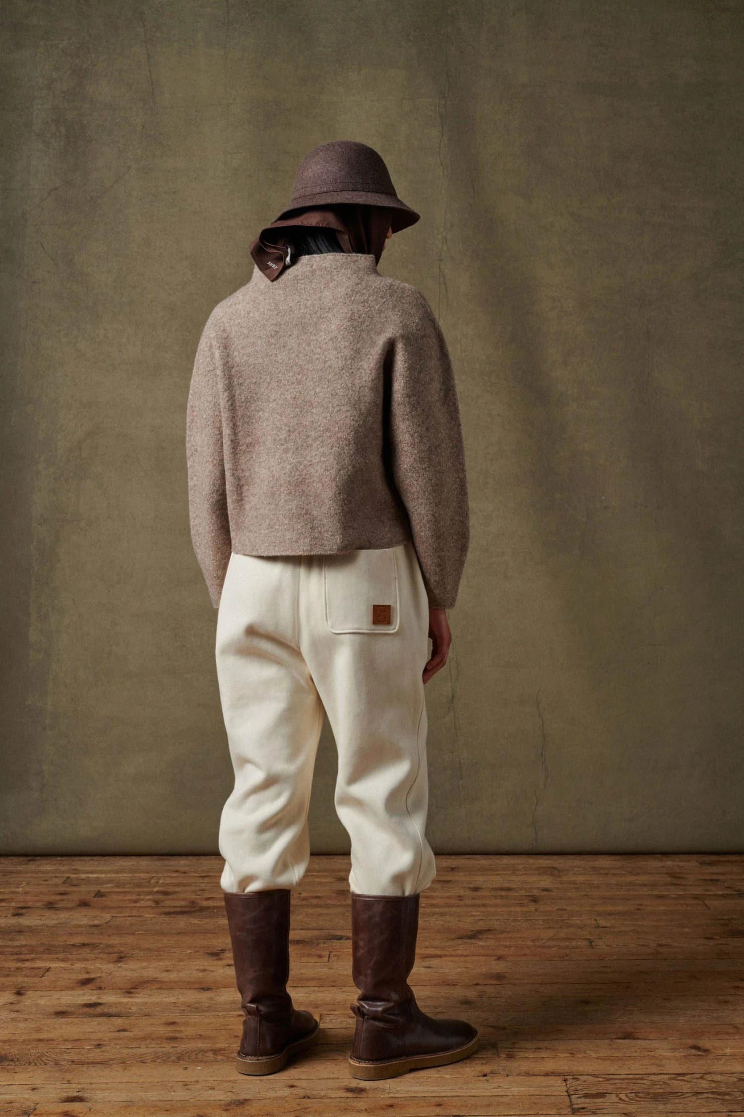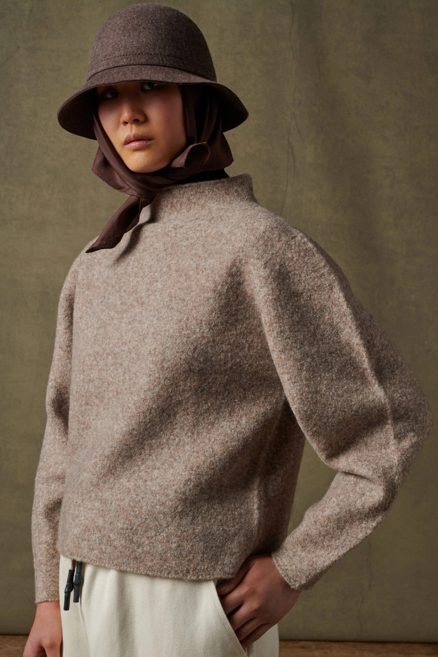 Stone est un pull confectionné dans une laine qui passe par différentes étapes de lavages pour avoir cet aspect feutré. Il possède un col légèrement montant qui se dépose délicatement sur le cou. C’est un pull au volume carré « suspendu » facile à porter au dessus d’un jean taille haute par exemple.