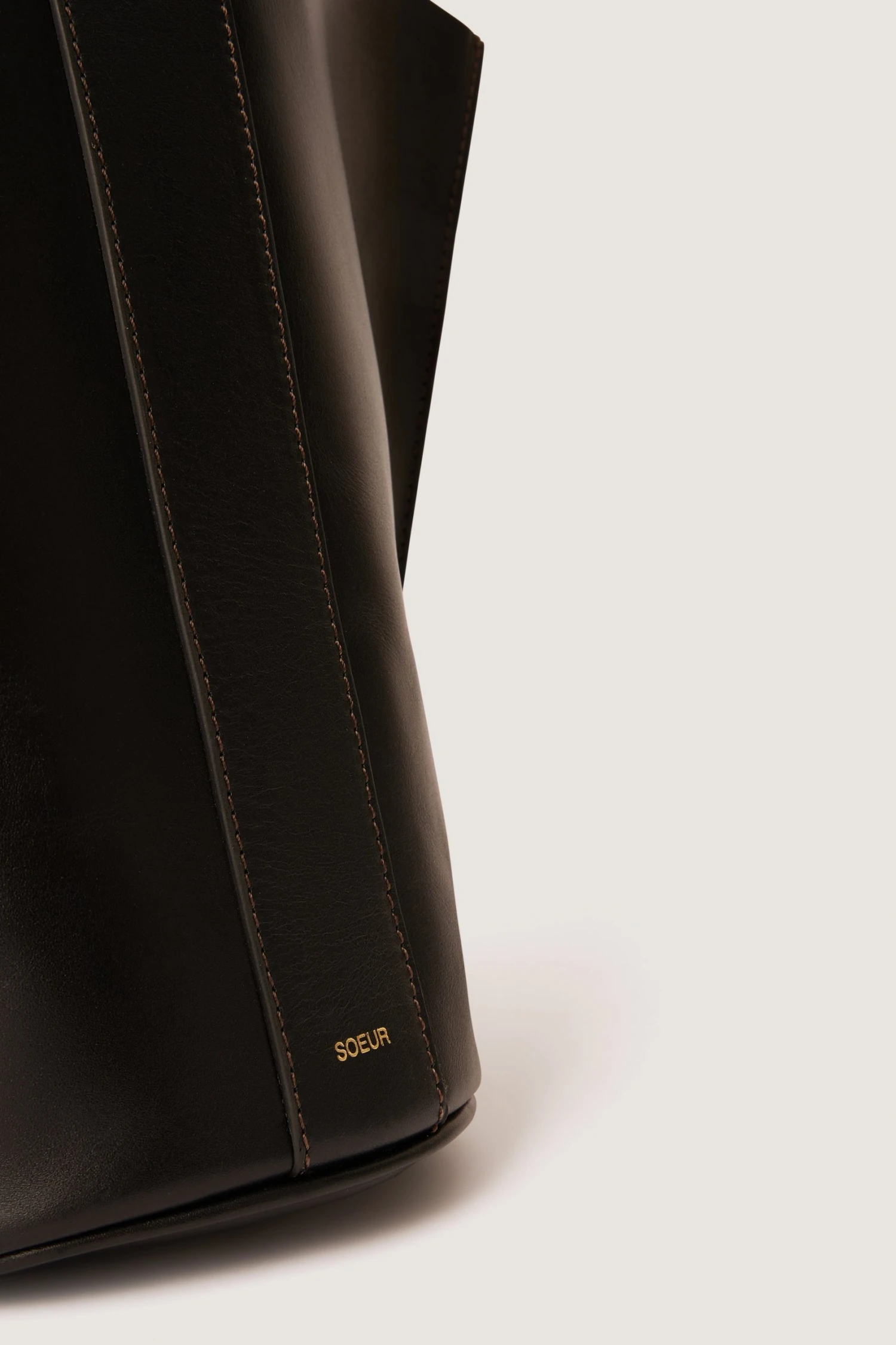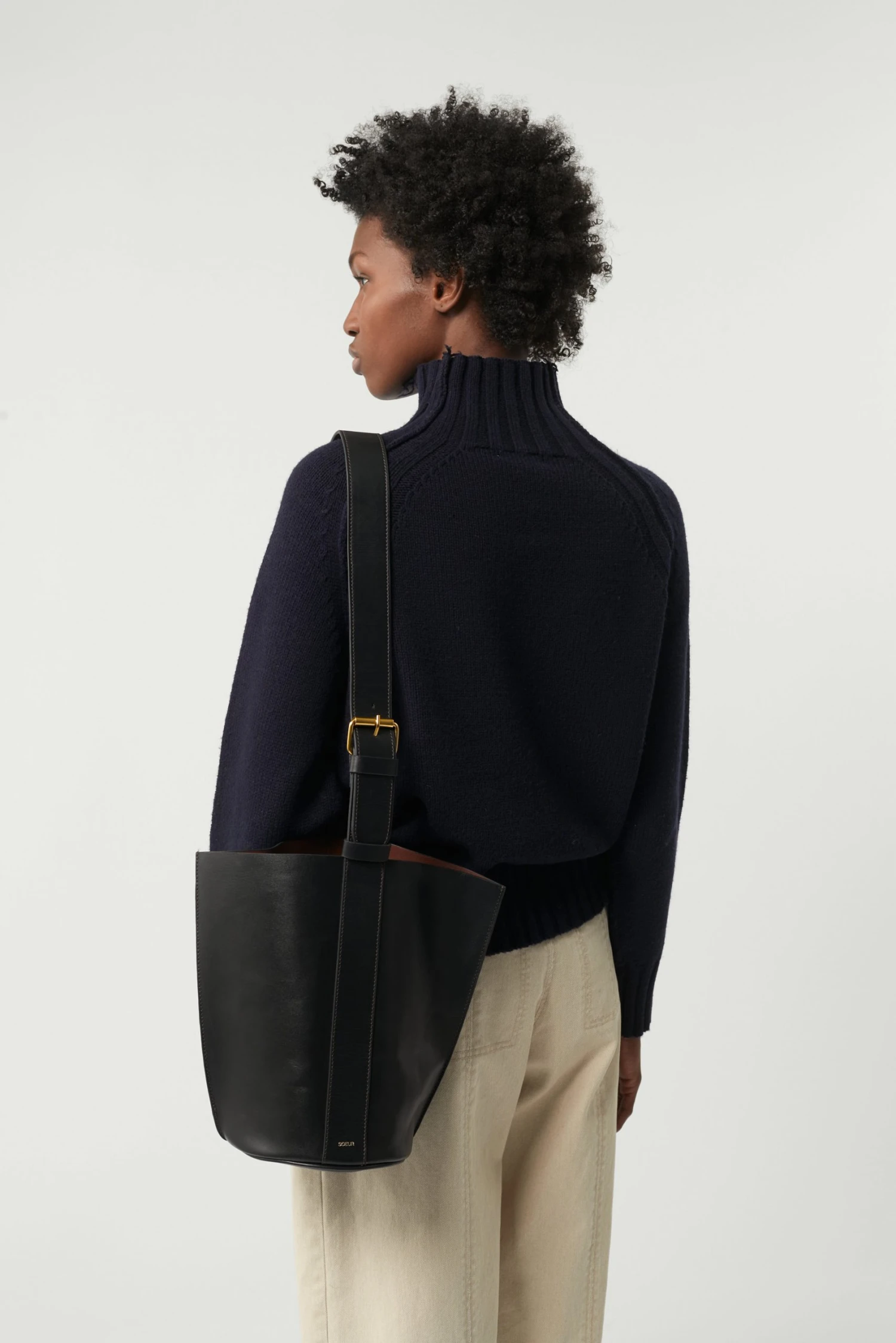 Saul est un sac seau bicolore oversize en cuir souple. Sa forme généreuse est maintenue par un cuir épais et luxueux ainsi qu’un jeu d’assemblage et de surpiqures en relief sur le côté. Le tout donne une allure élégante.