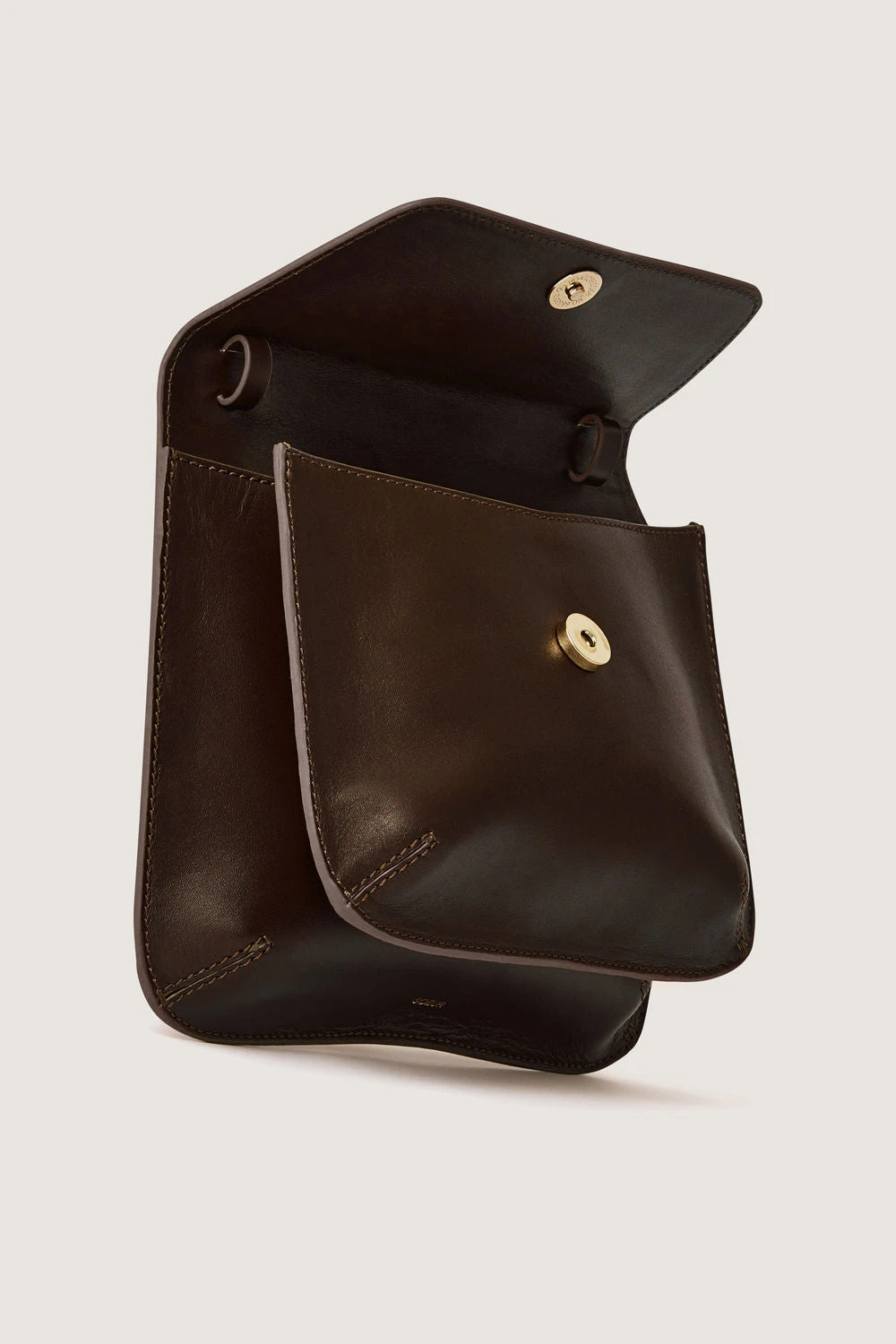 Silvia est un sac en cuir composé de deux compartiments de tailles différentes assemblés, donnant un effet visuel asymétrique. Le cuir épais et qualitatif ainsi qu’un jeu de pinces bombées donne un volume rond au bas du sac.