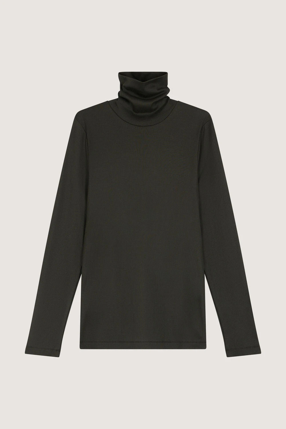 Col roulé uni à côtes Coton kaki