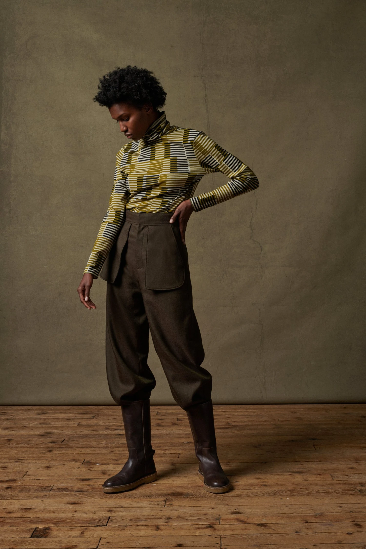 Col roulé à côtes en jersey de Coton imprimé multico kaki