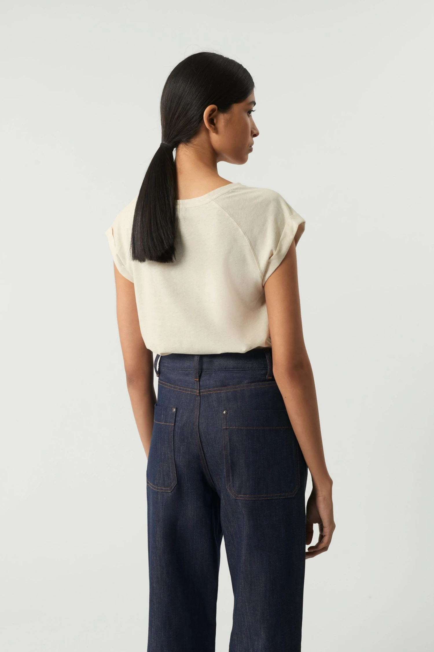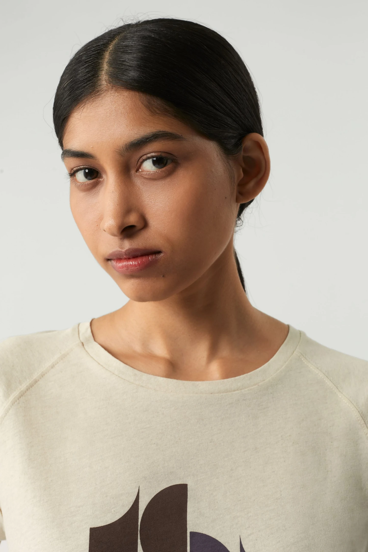 T-shirt sérigraphié en jersey de Coton et Lin écru chiné