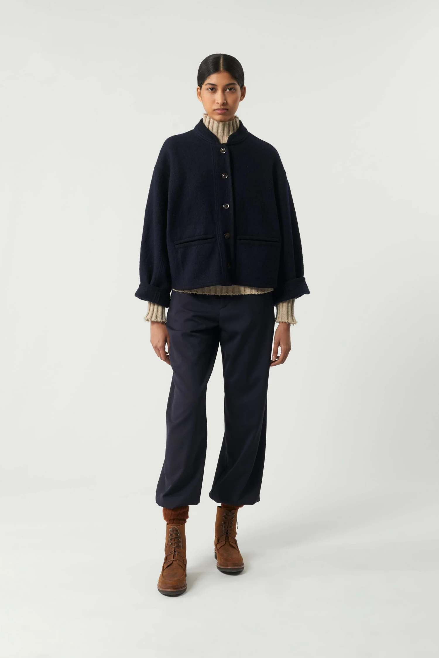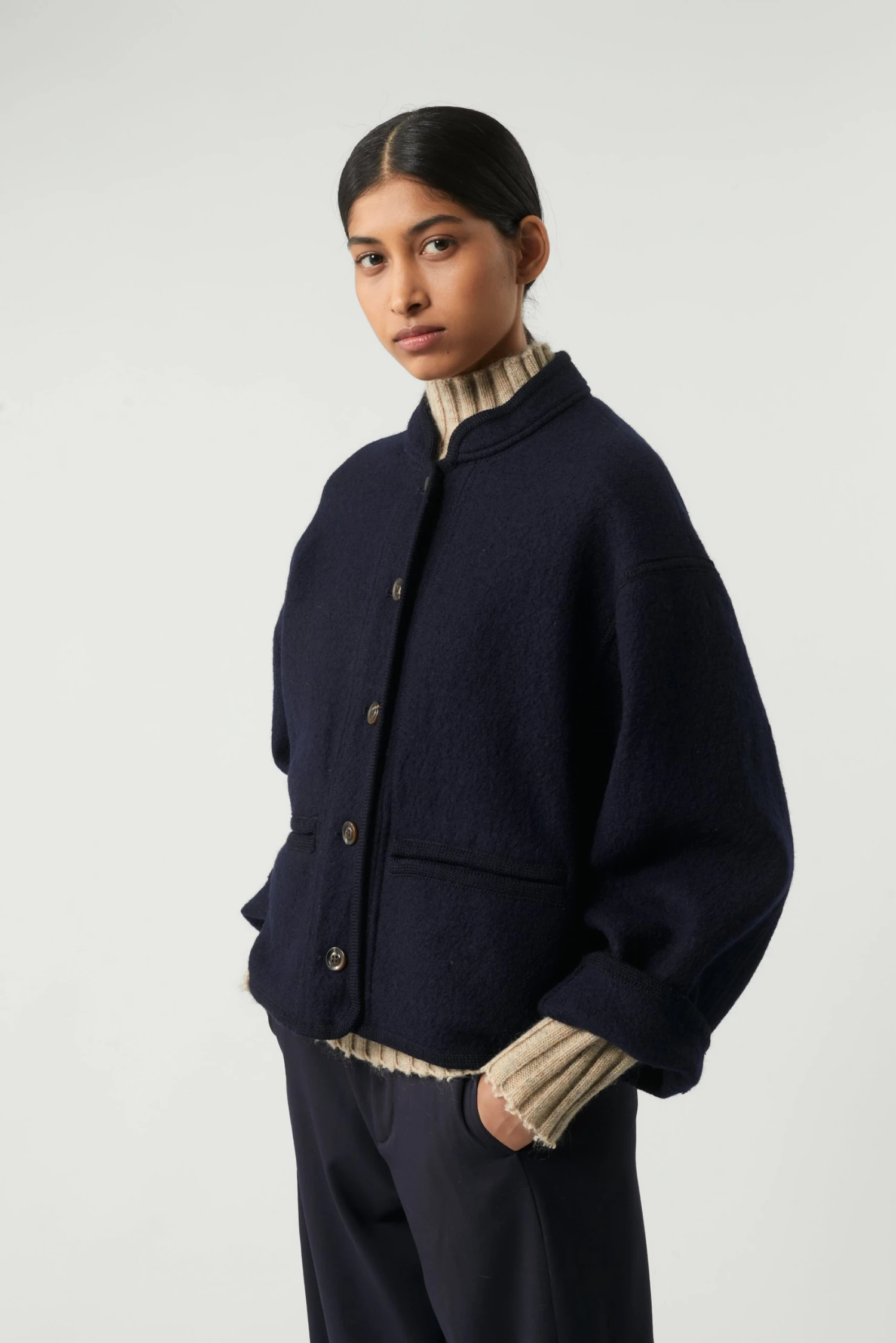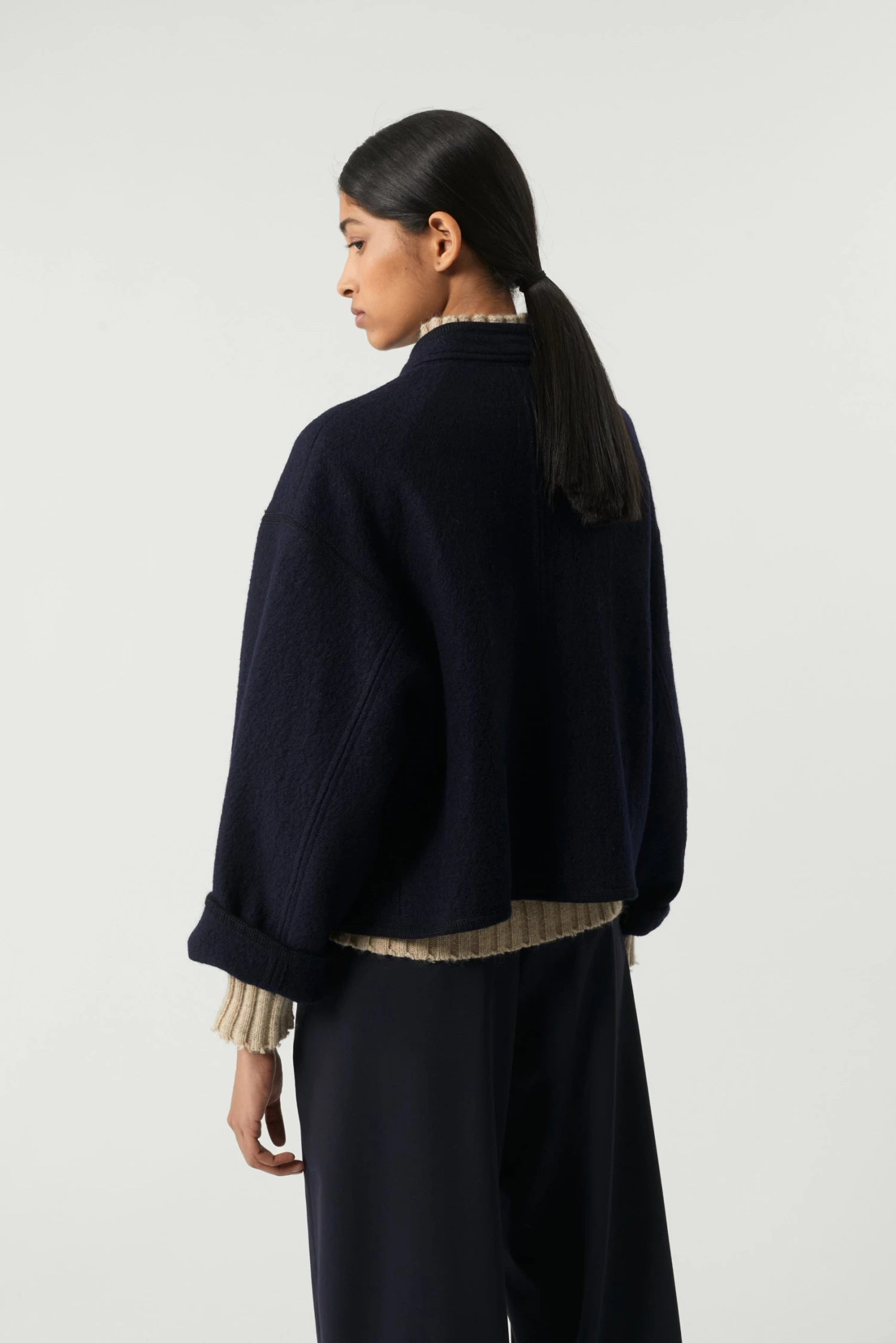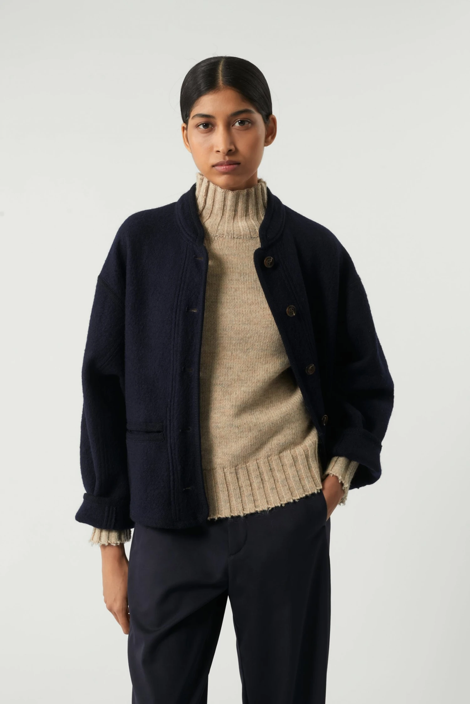 Manteau navy en Laine bouillie épaisse
