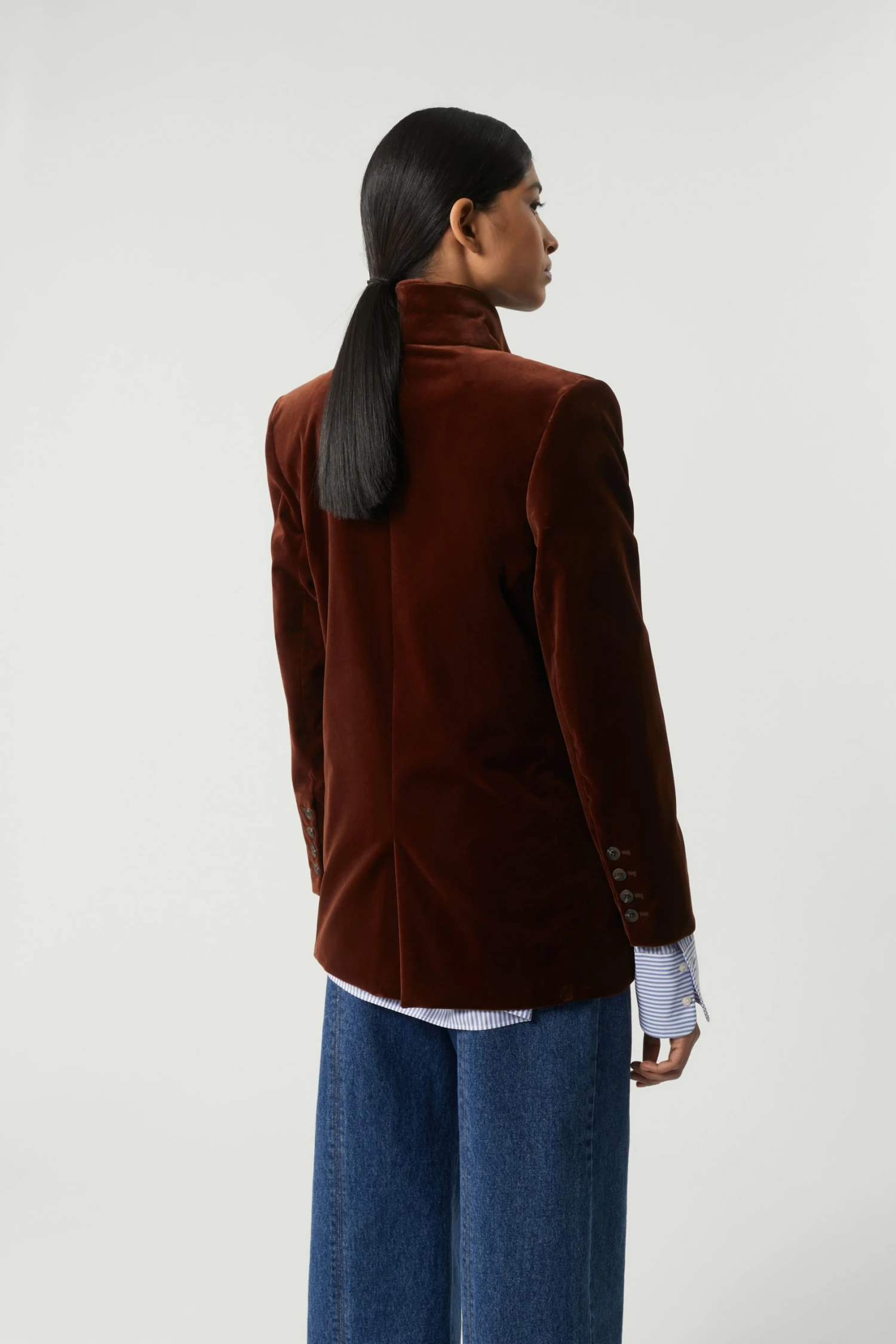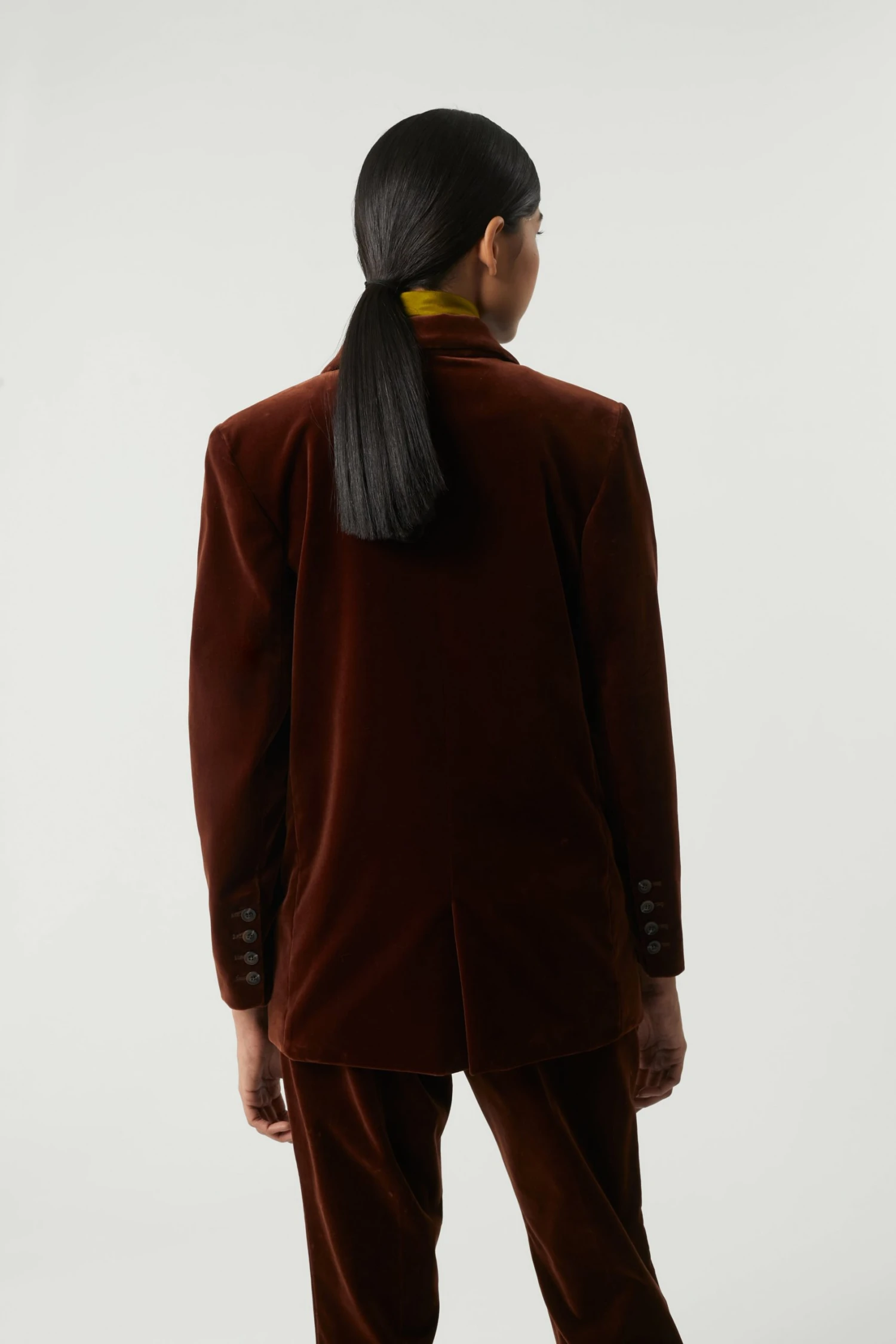 Rivoli est une veste oversize au double boutonnage discret et aux poches rabats à l’avant. Elle est à porter avec le pantalon Adèle dans la même matière ou la jupe Nova pour le total look.